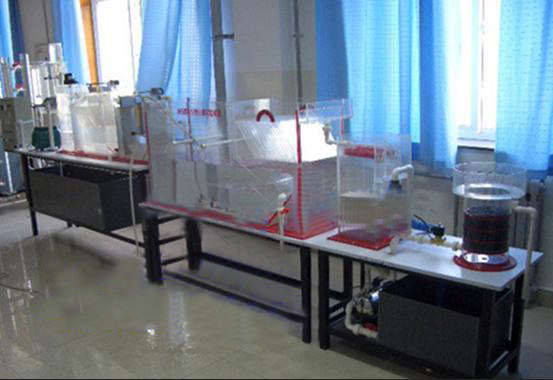 為連續(xù)運行的實驗裝置,主要采用油田廢水處理中的沉砂池、隔油池、浮選池、曝氣池、二沉池、快濾池等技術(shù)工藝。有機玻璃制作,具有良好的可視性,能清楚地了解工業(yè)廢水的整套處理流程。