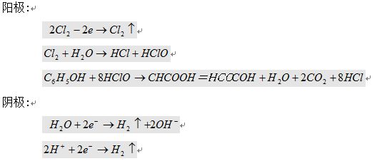 電解處理含酚廢水。在以NaCl為電解液時(shí),其反應(yīng)如下:
