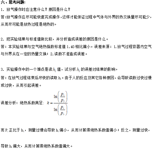 1.通過測量絕熱膨脹和定容加熱過程中空氣的壓力變化,計算空氣絕熱指數。