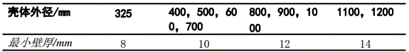 按照此方法計(jì)算得到的殼內(nèi)徑應(yīng)圓整,標(biāo)準(zhǔn)尺寸如下表: