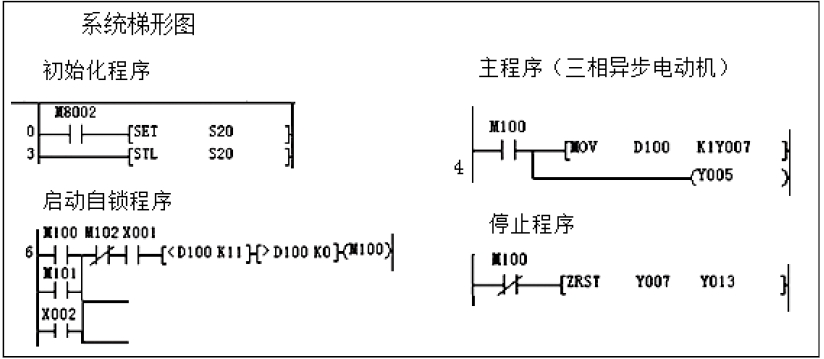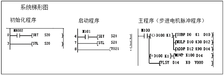 為了實現(xiàn)同一個任務由于選用不同的指令和設計不同的編程思路可以編寫出來多個不同的程序,這些程序的繁簡程度和用時長短自然就大不一樣。在YUYDJ-01型技能教學中,我們進行了步進電機和三相異步電動機轉(zhuǎn)速控制的PLC編程的優(yōu)化,以提高編程效率。"電機的控制"是《電機技術與應用》課程里的內(nèi)容,電氣與自動化專業(yè)的學生在職高二年級的時候已經(jīng)學過。其教學目標是,學生通過學習能夠正確理解電機的工作過程,并掌握三菱FX3u-32M系列PLC指令及編程,不僅學過ADDP加法指令、SUBP減法指令、MULP乘法指令;還學過MOVP數(shù)據(jù)傳送指令、ZRST區(qū)間復位指令、PLSY:16位連續(xù)執(zhí)行型脈沖輸出指令等。下面例舉兩臺電動機優(yōu)化后的編程實例。