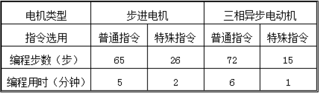 從表格中可以看出,選用普通指令編程用時較長,內(nèi)容繁瑣,且編完后由于程序太多不易在監(jiān)控狀態(tài)全屏操作,監(jiān)控時要用鼠標來回上下移動進行監(jiān)控,麻煩又浪費時間。而選用特殊指令編程,從編程步數(shù)、編程用時上,都得到了大大的縮減了,達到了優(yōu)化的目的,提高工作效率。從編程程序上看也是簡單明了,出錯率降低,即使出錯也容易檢出,編程過程中不需要重復插入新的行,所用指令大大減少。從程序所配套的觸摸屏上來說,其設置也比較簡單,不需要重復的設置參數(shù)。因而在今后的技能實踐中,要取得更好的教學效果和比賽成績,優(yōu)化程序,提高編程效率尤為重要。