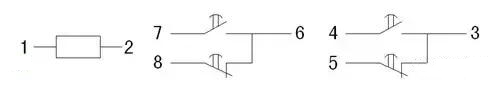 AH3型晶體三極管時(shí)間控制器有一付延遲型接觸點(diǎn),一付瞬動(dòng)接觸點(diǎn),其布線端排序?yàn)椋?-7為電磁線圈,5-8為常開常閉,6-8為開與關(guān)。如下圖所顯示: