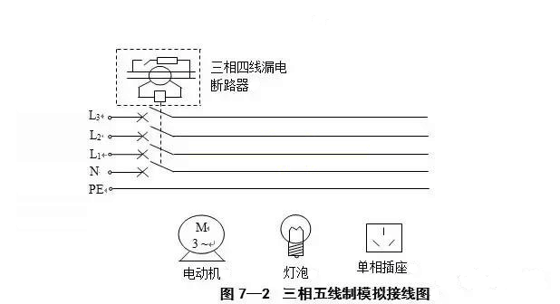 規(guī)定把握工作中零線與維護(hù)零線的作用及接線方法。見圖7-2所顯示。