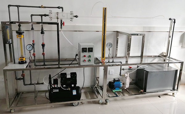 有機玻璃管實驗段、循環(huán)管道、玻璃轉(zhuǎn)子流量計、空壓機、水泵、混合器、分離器、差壓計、壓力表、空氣減壓閥、溫度儀表、水箱、流量調(diào)節(jié)閥、不銹鋼實驗臺。