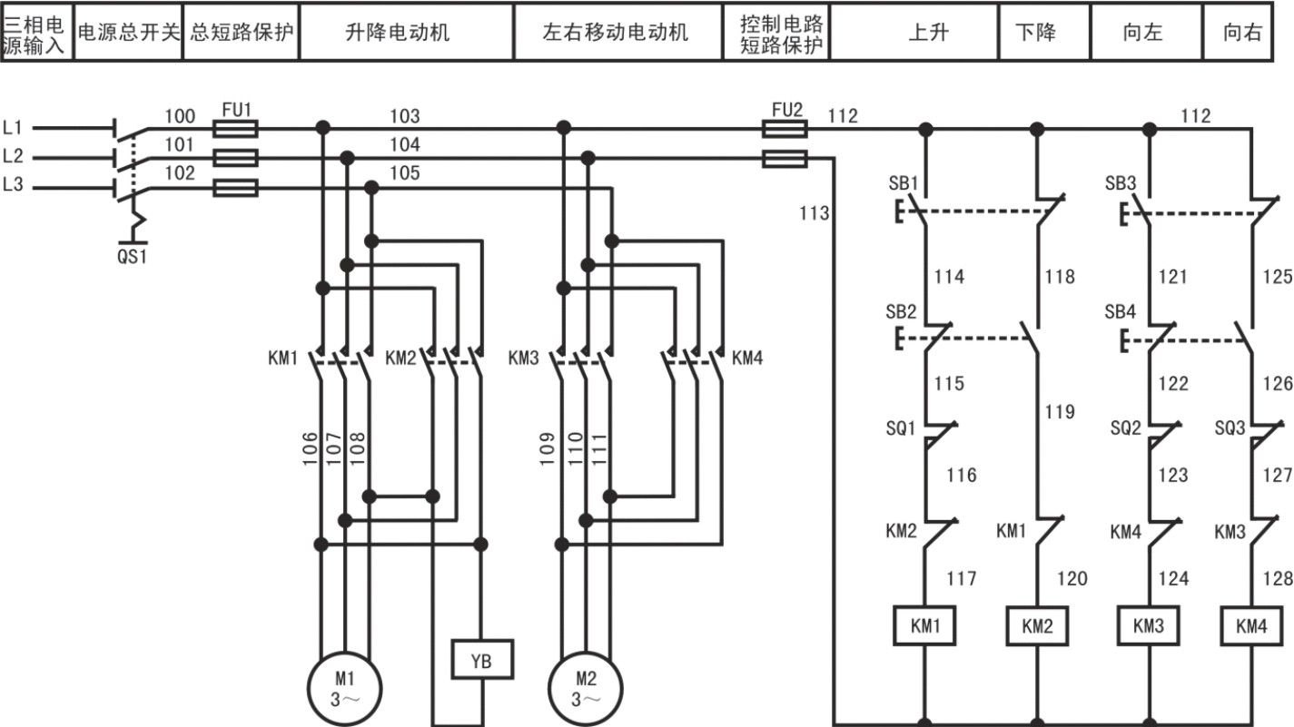 | M1、M2 | 三相鼠籠式異步電動機 |