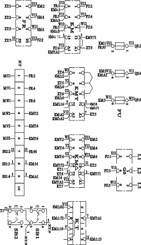 | KM1、KMY、KM△ | 交流接觸器 | CJX2-0910 | 線圈AC380V | 3 |