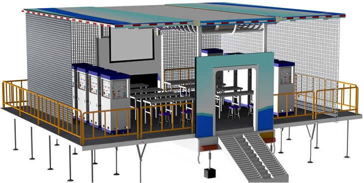 車體展開后實訓平臺的面積可以達到70平方米,可以滿足預定專業(yè)20多人的培訓需求。