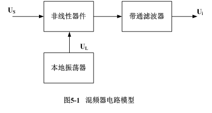 混頻器的功能是將載波為(高頻)的已調(diào)波信號不失真地變換為另一載頻fi (固定中頻)的已調(diào)波信號,而保持原調(diào)制規(guī)律不變。例如在調(diào)幅廣播接收機中,混頻器將中心頻率為535-1605KHZ的已調(diào)波信號變?yōu)橹行念l率為465KHZ的中頻已調(diào)波信號。此外,混頻器還廣泛用于需要進行頻率變換的電子系統(tǒng)及儀器中,如頻率合成器,外差頻率計等。混頻器的電路模型如圖 5-1所示。
