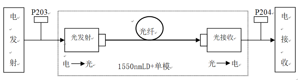 在本實驗系統(tǒng)中,電發(fā)射部分可以是M序列,可以是各種線路編碼(CMI、5B6B、5B1P等),也可以是語音編碼信號或者視頻信號等,光信道可以是1550nmLD+單模光纖組成,可以是1310nm激光/探測器組成,也可以是850nmLED+多模光纖(選配)組成。本實驗系統(tǒng)中提供的1550nmLD光端機是一體化結(jié)構(gòu),光端機包括光發(fā)射端機TX(集成了調(diào)制電路、自動功率控制電路、激光管、自動溫度控制等),光接收端機RX(集成了光檢測器、放大器、均衡和再生電路)。其數(shù)字電信號的輸入輸出口,都由銅鉚孔開放出來,可自行連接。一體化數(shù)字光端機的結(jié)構(gòu)示意圖如下: