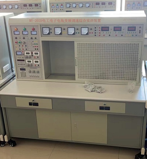 一、MY-202D 網孔型電工電子電力拖動變頻調速PLC實訓裝置為配合職業(yè)教育和就業(yè)人員實際操作、培訓、鑒定的需求,設備綜合了大中專院校、職業(yè)院校、技工學校的《電工技能訓練》《電工實訓》《電氣控制技術》《電力拖動控制線路與技能訓練》《電機及拖動基礎》《工廠繼電器接觸控制》《PLC原理及應用技術》《變頻原理及應用技術》《電子技能訓練》等相關科目的實驗及實訓教學內容而研發(fā)。本裝置電工部分采用網孔板結構,訓練與鑒定接近工業(yè)現(xiàn)場,增加元器件即可增加實訓項目,可擴展性強。裝置設置多重科學安全保護措施,確保設備和操作者人身安全,非常適合各大中專院校、職業(yè)學院、技工學校和各類培訓機構訓練學生電工電子基本技能、專業(yè)技能和變頻器、PLC綜合技能,也可進行電工等級考核和技能鑒定。