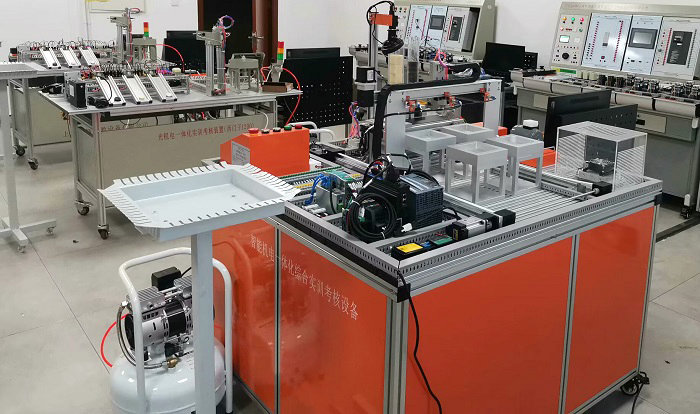 一、建設目標 結合學院當前和未來的發(fā)展規(guī)劃目標,本次規(guī)劃設計的工業(yè)機器人技能技能工作室能達到以下目標: --具備能夠滿足各專業(yè)教學實訓的基本技能、綜合技能、創(chuàng)新技能,以及中級、高級、技師、高級技師的職業(yè)資格和人才培養(yǎng)的需求。 --具備能夠滿足現代先進技術并緊密結合先進制造業(yè)技術發(fā)展的新工藝、新知識、新技能、新任務的需求。 --具備能夠滿足緊缺人才培訓,高技能人才培訓,農村勞動力轉移培訓,退役士兵培訓,職業(yè)能力轉換培訓等綜合培訓、鑒定的需求。 --具備能夠滿足國家骨干師資培訓,一體化教學師資培訓及其他雙師型師資培訓等綜合性師資培訓的需求。 --具備能夠滿足開展教學研討,開展技能競賽,開展學術交流,開展課程改革等等需要的多功能綜合性基地的需求。 規(guī)劃設計的一體化機電專業(yè)、電氣和自動化專業(yè)、工業(yè)自動化專業(yè)實訓基地的實訓裝備,本著實用性,實操性,職業(yè)性,綜合性為出發(fā)點,其技術優(yōu)勢如下: 技術的先進性 整套方案體現出現代制造業(yè)領域中所包含的PLC控制技術、網絡通信技術等先進控制理念及管理系統。 --技術的前瞻性 本套方案在基于現代控制理念的基礎上,突出體現現代制造業(yè)前沿科技的應知點及應會點,如工業(yè)機器人控制技術,智能監(jiān)控技術等。 技術的綜合性 集成了光、機、電、氣、液、網絡通信、數字控制等綜合技術的應用,完全覆蓋現有機電專業(yè)教學大綱及流行教材的訓練內容。 技術的職業(yè)性 方案所涉及的訓練內容,在滿足機電專業(yè)教學的前提下,結合相關工種的國家職業(yè)標準,既能進行培訓練習又能用于鑒定考核。 技術的可操作性訓練載體體現高起點、高科技、高技能的特點,該套方案配備了完整系統的解決措施,具備配套的課程體系、教學大綱、訓練教材及長期穩(wěn)定的師資培訓計劃。 技術的兼容性 該方案的技術來源于生產實際,不但能夠用于教學訓練,還能進行與生產實際相關的典型工作任務,使學校實訓與生產實際零距離接軌。 二、實訓項目 1.PLC認知實訓(軟硬件結構、系統組成、基本指令、接線、編程下載等) (一).PLC虛擬控制應用實訓 1.數碼顯示控制 2.搶答器控制 3.天塔之光控制 4.音樂噴泉控制 5.十字路口交通燈控制 6.水塔水位控制 7.自動送料裝車系統控制 8.四節(jié)傳送帶控制 9.裝配流水線控制 10.多種液體混合裝置控制 11.自動洗衣機控制 12.貨物分揀機控制 13.自動售貨機控制 (二).PLC實物控制應用實訓 14.視覺識別控制 15.RFID控制 16.長度定長控制 17.稱重控制 18.氣動基本回路控制 19.直線運動位置檢測、定位控制 20.步進電機定位控制 21.步進電機的速度控制 22.步進電機的正反轉控制 23.伺服電機定位控制 24.伺服電機的速度控制 25.伺服電機的正反轉控制 26.伺服電機和步進電機的綜合控制 (三).PLC、變頻器、觸摸屏綜合應用技能實訓 27.變頻器功能參數設置與操作 28.外部端子點動控制 29.變頻器控制電機正反轉 30.多段速度選擇變頻調速 31.變頻器無級調速 32.外部模擬量方式的變頻調速控制 33.基于PLC的變頻器外部端子的電機正反轉控制 34.基于PLC模擬量方式變頻開環(huán)/閉環(huán)調速控制 35.基于PLC通信方式的變頻開環(huán)調速 36.基于觸摸屏控制方式的基本指令編程練習 37.基于觸摸屏控制方式的數碼顯示控制 (四).網絡通訊綜合實訓 38.PLC與變頻器RS485通訊實訓 39.PLC、觸摸屏與變頻器通信控制 40.PLC主機之間PROFINET通訊實訓 41.PLC、變頻器、觸摸屏組網綜合應用實訓 42、PLC與RFID通訊控制 43、PLC與工業(yè)相機通訊 |
